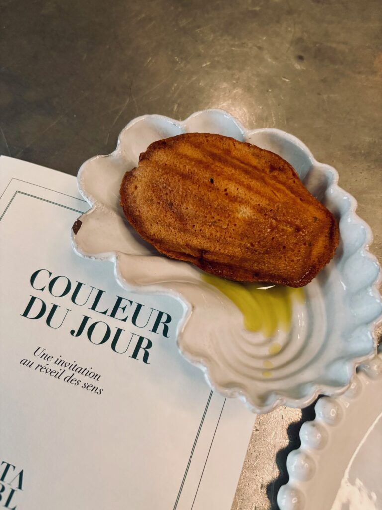 そして、オリーブオイルに浸した黒オリーブ入りのマドレーヌ。どれもヴェルジュの世界観を体現するものでした。